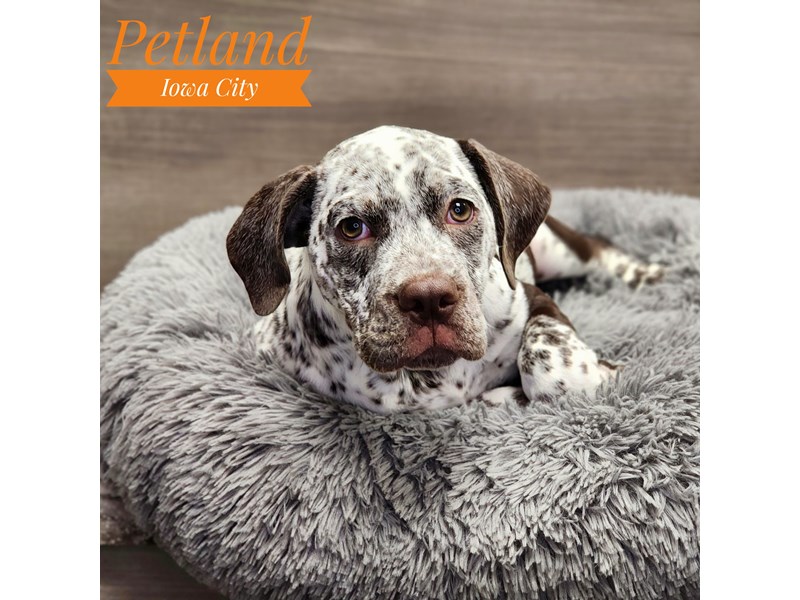 Bullmatian Dog Female Liver / White 19029 Petland Iowa City, Iowa Adopted